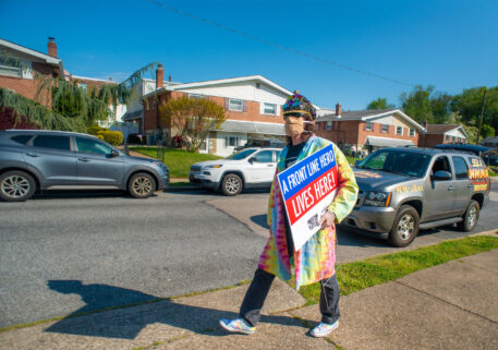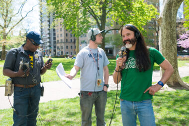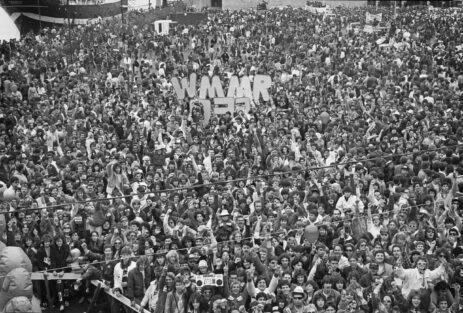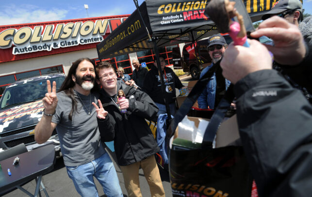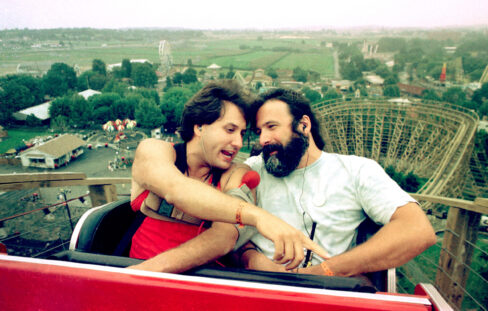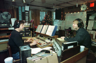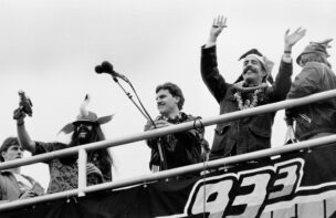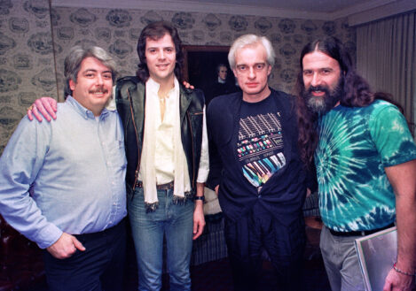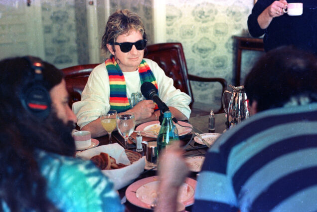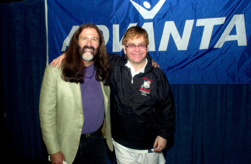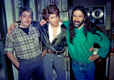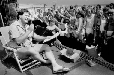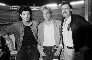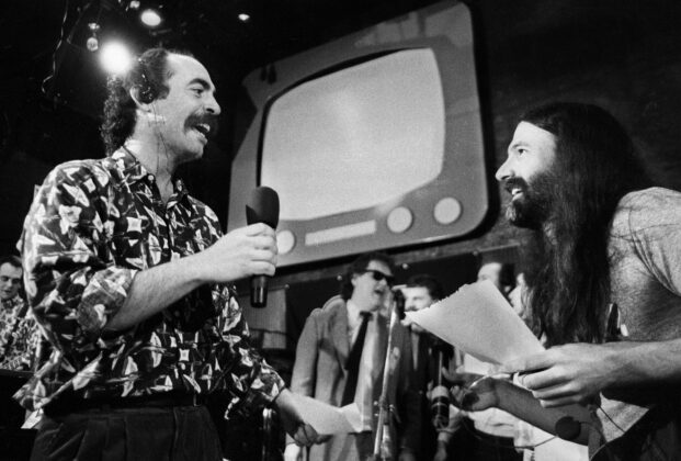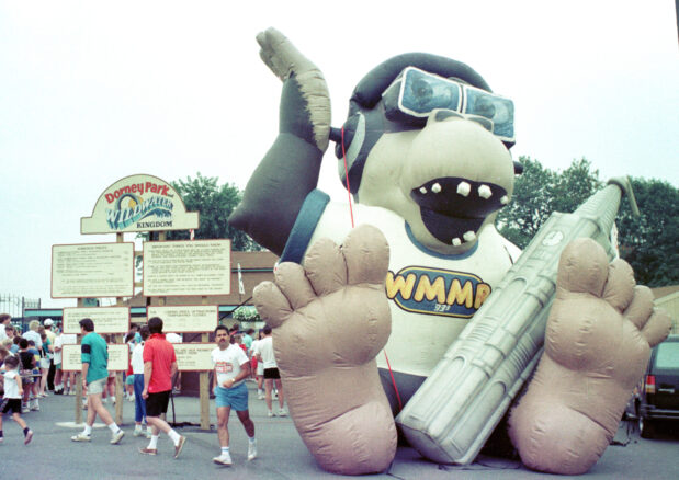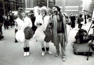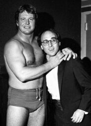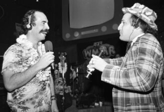 FILE PHOTO: “Rowdy” Roddy Piper, left, pretends to strangle Michael Tearson, right, before the start of a WWF wrestling match in this winter 1986 file photo, at the Spectrum in Philadelphia. Tearson, a local Philadelphia radio personality, was the guest master of ceremonies for the evening. (Photo by William Thomas Cain)